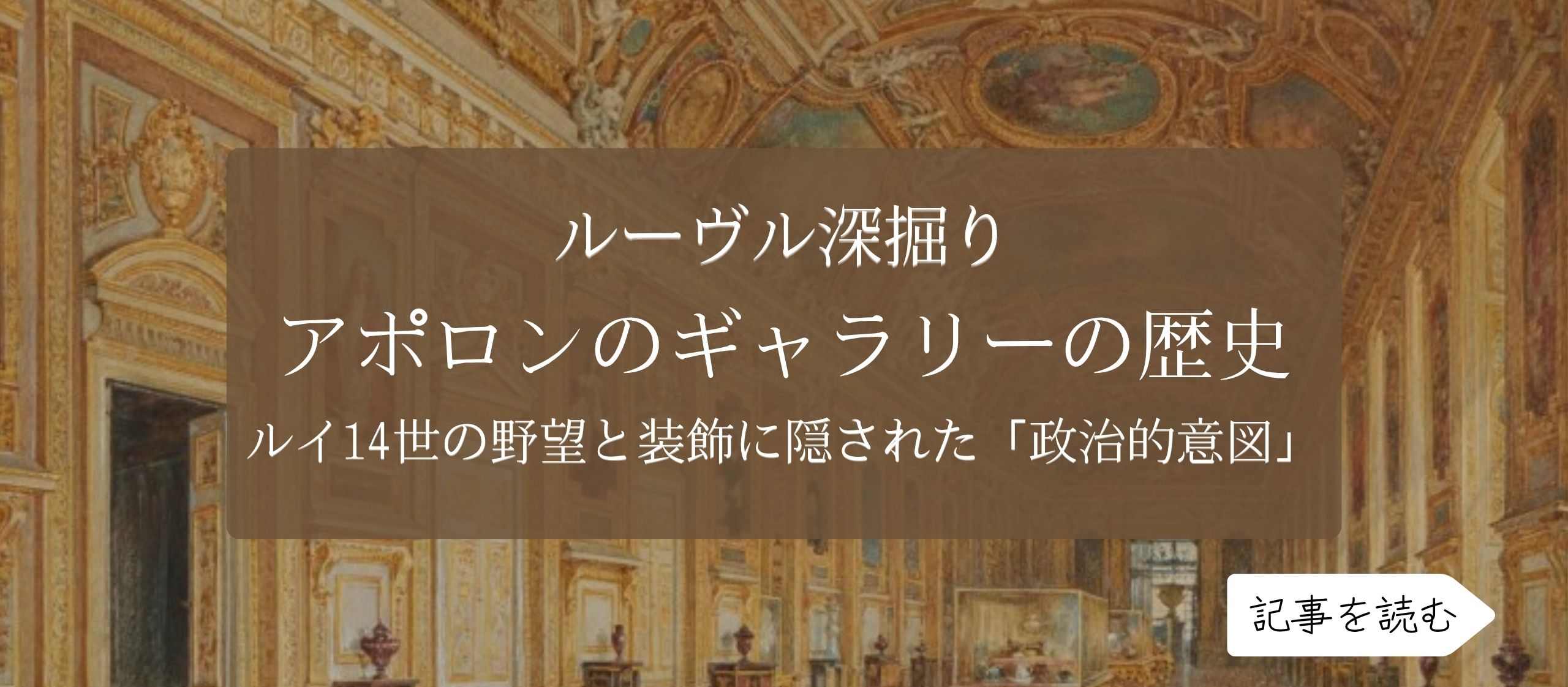 もともとは「プティット・ギャラリー」と呼ばれる回廊として建てられましたが、1661年の火災で大きな被害を受けました。その後、ルイ14世の治世下で再建され、太陽王の象徴であるアポロンをテーマにした壮麗な装飾空間へと生まれ変わります。